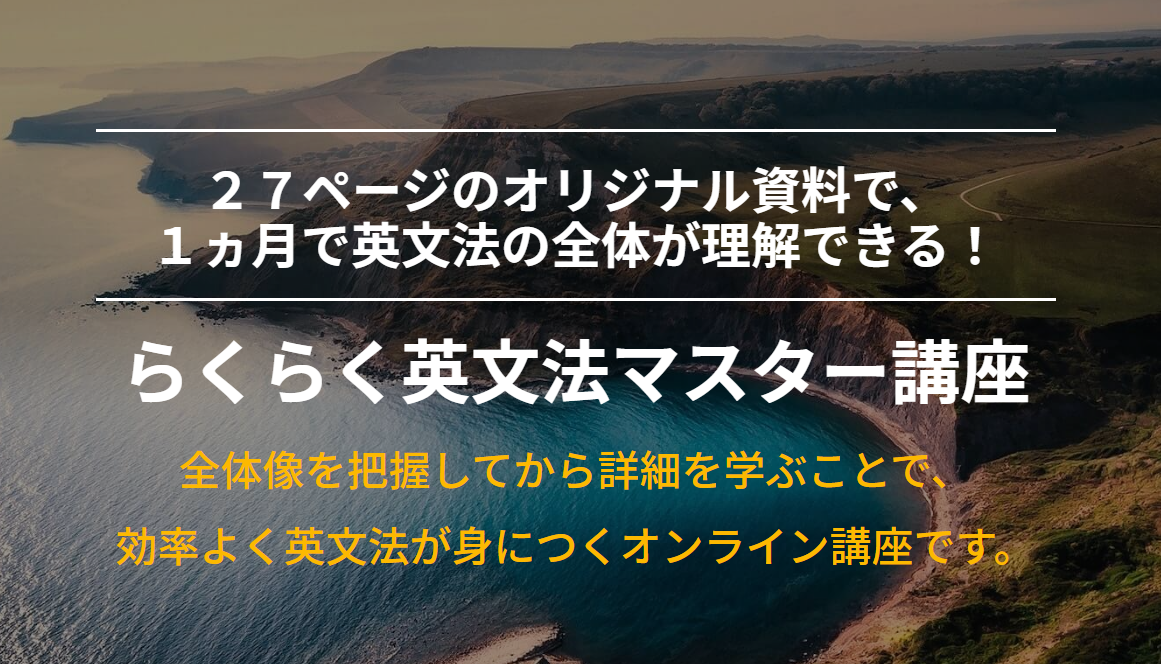 今までの学習法で英文法が理解できなかった方は、英文法を全体像から学べる「らくらく英文法マスター講座」でぜひ学んでみて下さい!