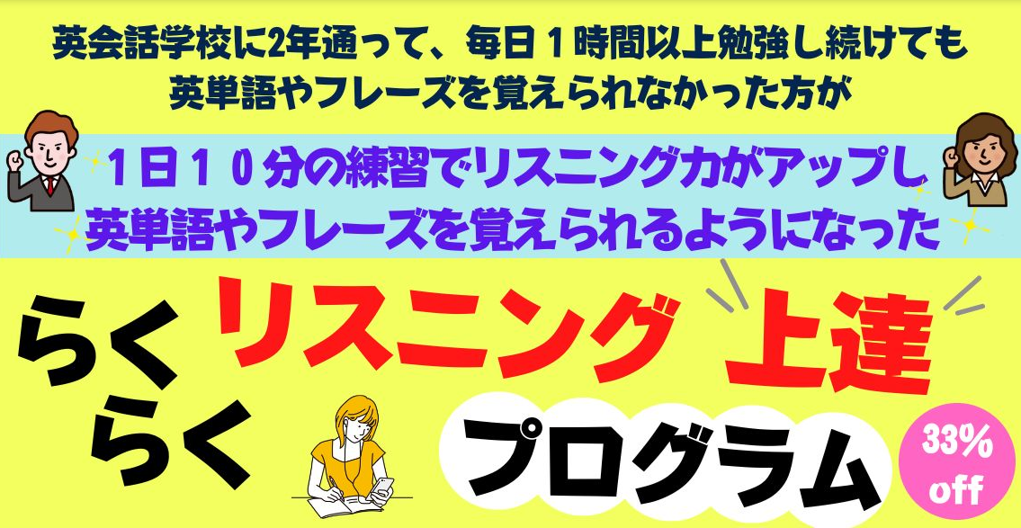 「らくらく英語のリスニング上達プログラム」は、脳の特性や記憶のメカニズムを考慮し、短時間の練習でらくらく英単語やフレーズを覚えながら英語のリスニングを上達させることができる方法です。