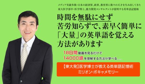 『ミリオン・ボキャメモリー』は、元東京大学医学部 附属病院 医師の森田先生が開発した『天才脳理論』に基づくメソッドによる英単語記憶術です。